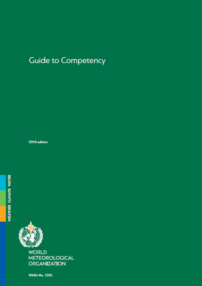 In 2018, WMO published a Guide to Competency (WMO-No. 1205). The purpose of this Guide is to provide guidance to Members’ organizations that are developing, implementing and/or maintaining competency-based training and assessment programmes based upon the WMO competency frameworks established in the Technical Regulations, Volume I (WMO-No.49). Examples of selected Members’ best practices are included in this guidance material to facilitate transfer of knowledge and experience, and thus enable organizations to achieve compliance with the WMO requirements in the most efficient way.