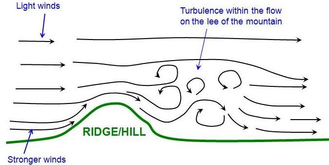 In general, the stronger the wind and the rougher the terrain, the more intense the turbulence experienced. Light winds over a smooth sea give the least turbulence.