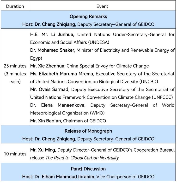 High-level representatives of the UN and relevant international organizations, high-rank officials of relevant countries, experts and scholars from universities and research institutions, and heads of enterprises and financial institutions will share their views on the main topic of "The Road to Global Carbon Neutrality". They will seek solutions to global climate and environmental crises. Discussions will revolve around such topics as clean energy development, low-carbon energy transition, cross-regional energy interconnection, technological innovation, and infrastructure construction.