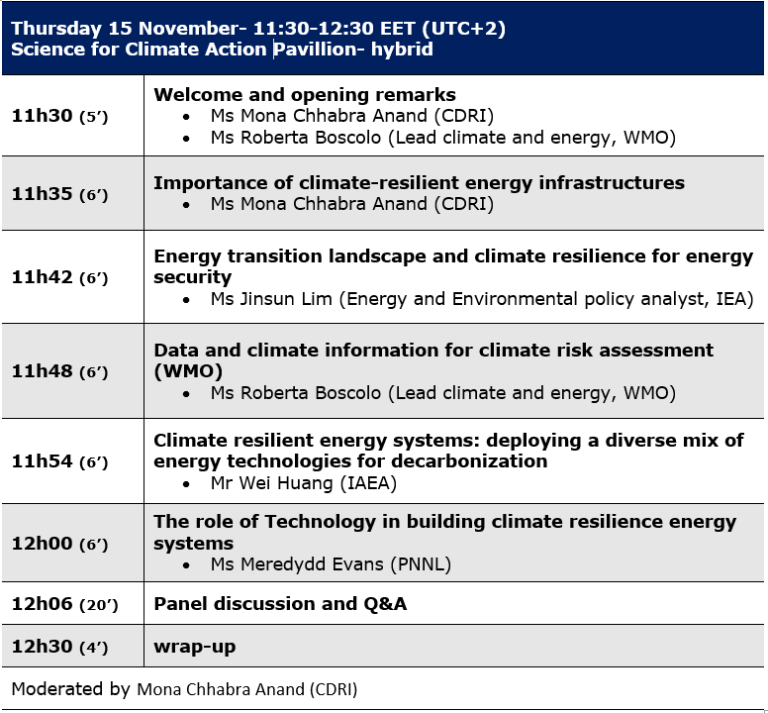 COP27 side-event: Pathways to Climate and Disaster Resilient Energy Transition