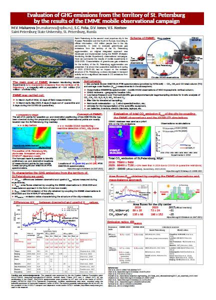 Maria Makarova (Saint Petersburg State University ) "Evaluation of greenhouse gas emissions from the territory of St. Petersburg by the results of the EMME mobile observational campaign"