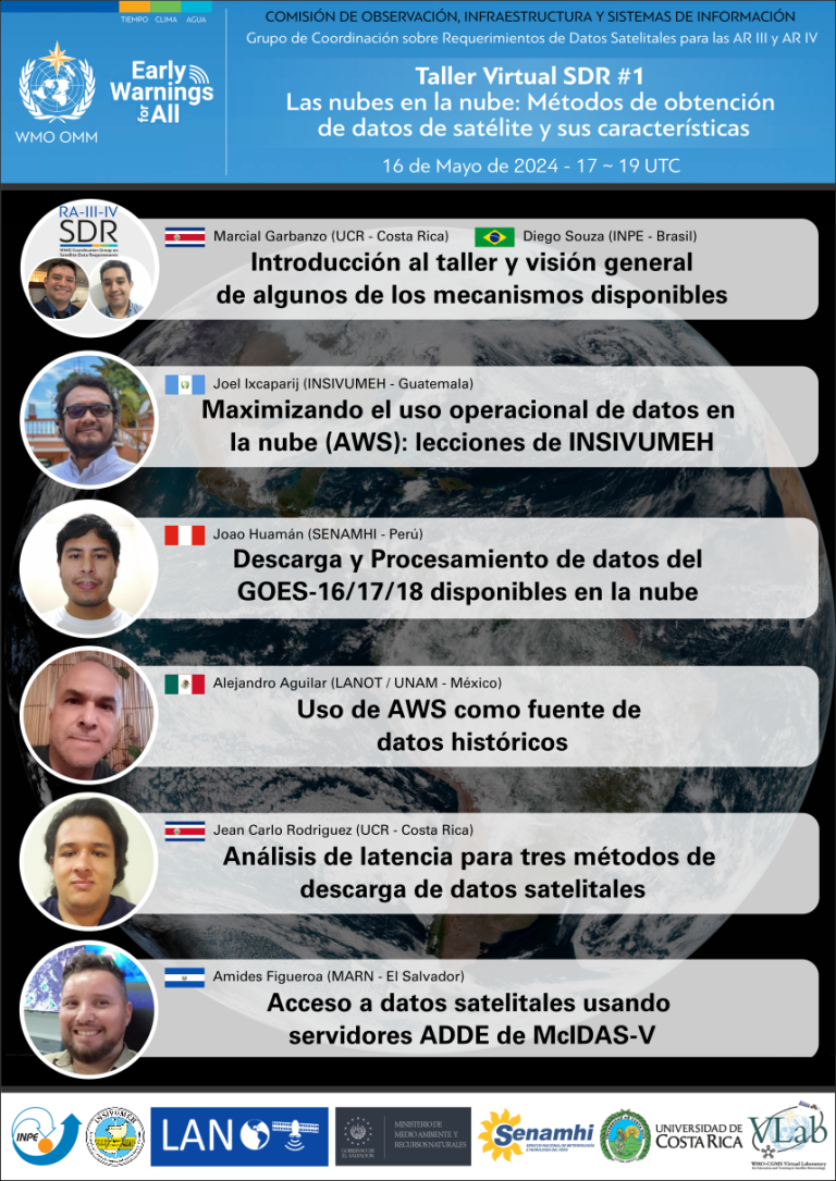 SDR Virtual Workshop #1 - Clouds in the Cloud: Methods for Obtaining Satellite Data and their Characteristics Remote Share: 17 May 2024, 00:00 - 02:00 (Europe/Zurich: 17 May 2024, 00:00 - 02:00) Past event Only in Spanish Meeting documents