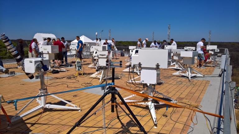 XII Regional intercomparison of the Brewer Calibration Center for Europe (RBCC-E) was held at El Arenosillo Atmospheric Sounding Station of the “Instituto Nacional de Técnica Aeroespacial” (INTA) during the period 29 May - 9 June 2017. 20 Brewer spectrometers, 15 operators and experts from 9 countries took part in XII Regional intercomparison campaign. This campaign is part of the EUBREWNET ES1207 COST Action and is organized in collaboration with the “Area of Instrumentation and Atmospheric Research Area” of INTA, with the support of the Global Atmosphere Watch (GAW) program of the World Meteorological Organization (WMO). This activity will be used as demonstration campaign of the calibration methodologies and error assessment developed by the EMRP ATMOZ project (Traceability of Atmospheric Total Ozone).The action focuses on the calibration of Brewer spectrophotometers from Europe and North Africa. The RBCC-E provided ozone and Aerosol Optical Depth (AOD) calibration against the RBCC-E reference, whereas the Quality Assurance of Spectral Ultraviolet Measurements (QASUME) International portable reference spectroradiometer of the Physikalisch-Meteorologisches Observatorium Davos / World Radiation Center (PMOD /WRC) provided a global UV reference spectrum for the ultraviolet measurements.