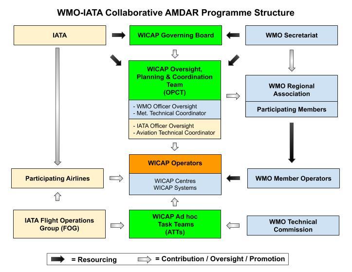 | The WICAP will be supported by a programmatic structure that will take advantage of existing WMO and IATA organizational bodies and their functions to organise and oversight the programme, while the Member partners of both organizations will take on the technical and developmental roles for the programme's operation. |