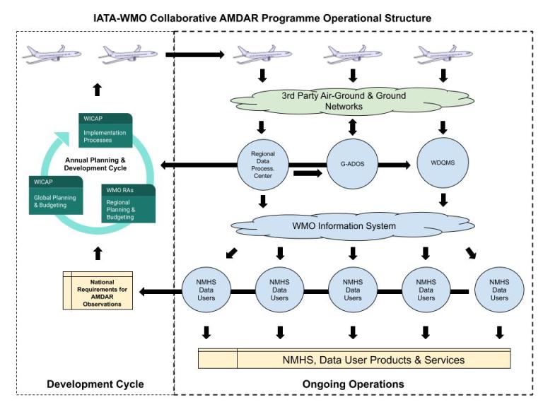 As is the case in the current AMDAR Programme, WMO Member NMHSs would continue to be responsible for the operational elements of the Programme, which primarily focus on the ground-based aspects of data management, including reception, quality control, transmission on the WMO Information System, longer-term archival and provision of data to users.