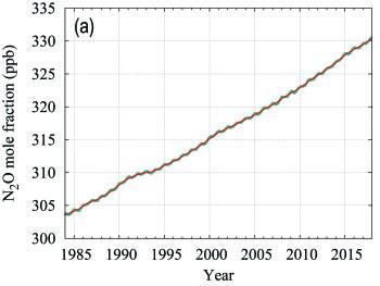 Table 1 provides globally averaged atmospheric abundances of the three major LLGHGs in 2017 and changes in their abundances since 2016 and 1750. Data from mobile stations (blue triangles and orange diamonds in Figure 2),with the exception of NOAA sampling in the eastern Pacific, are not used for this global analysis.
