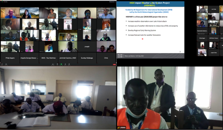 In a continued effort to provide more accurate weather predictions in the Lake Victoria region, a radar and nowcasting workshop was held on 14-25 September through the HIGHWAY project. Due to COVID-19 restrictions, the workshop was conducted primarily online, with an in-person component for 10 participants in Entebbe.